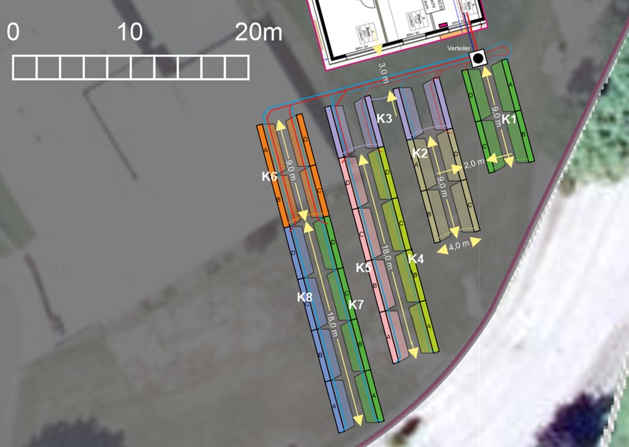 Aufgabenstellung: Erschließung der Energiequelle für die Versorgung einer 28KW Sole Wärmepumpe.