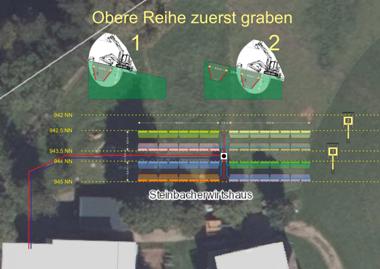 Aufgabenstellung: Erschließung der Energiequelle für die Versorgung einer 25KW Sole Wärmepumpe.